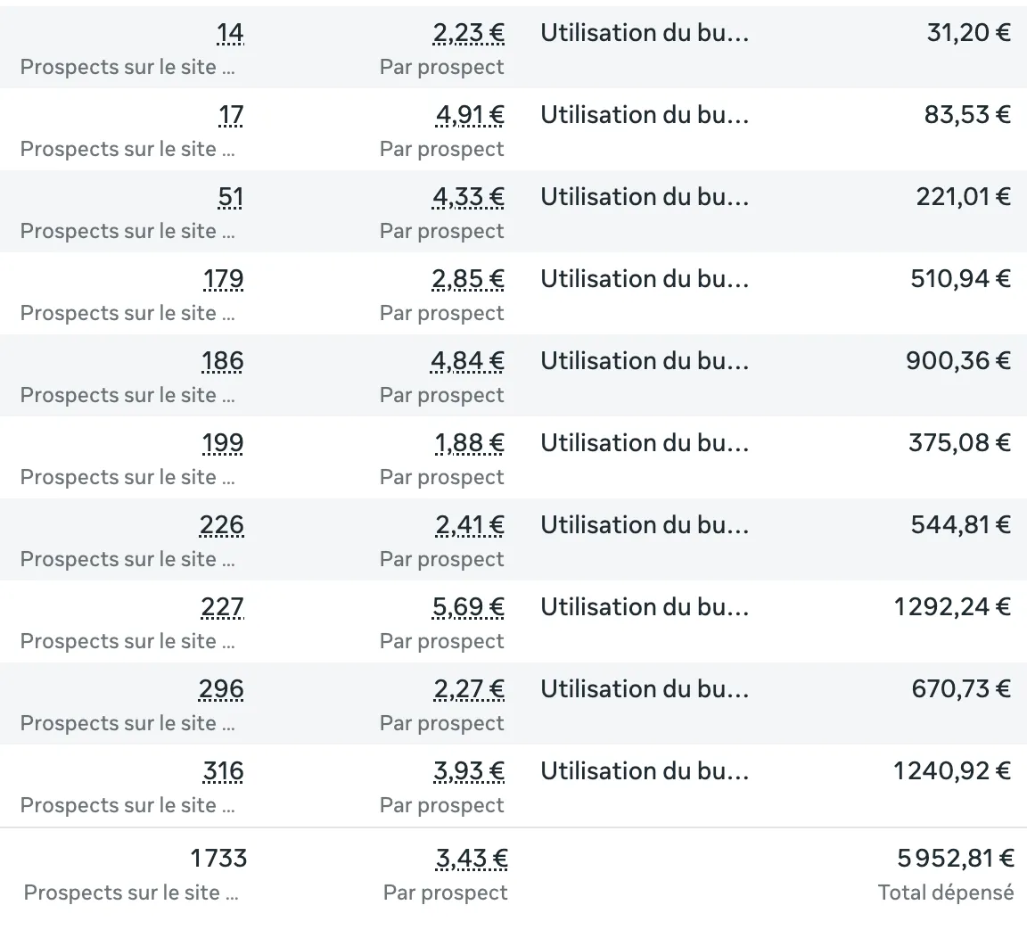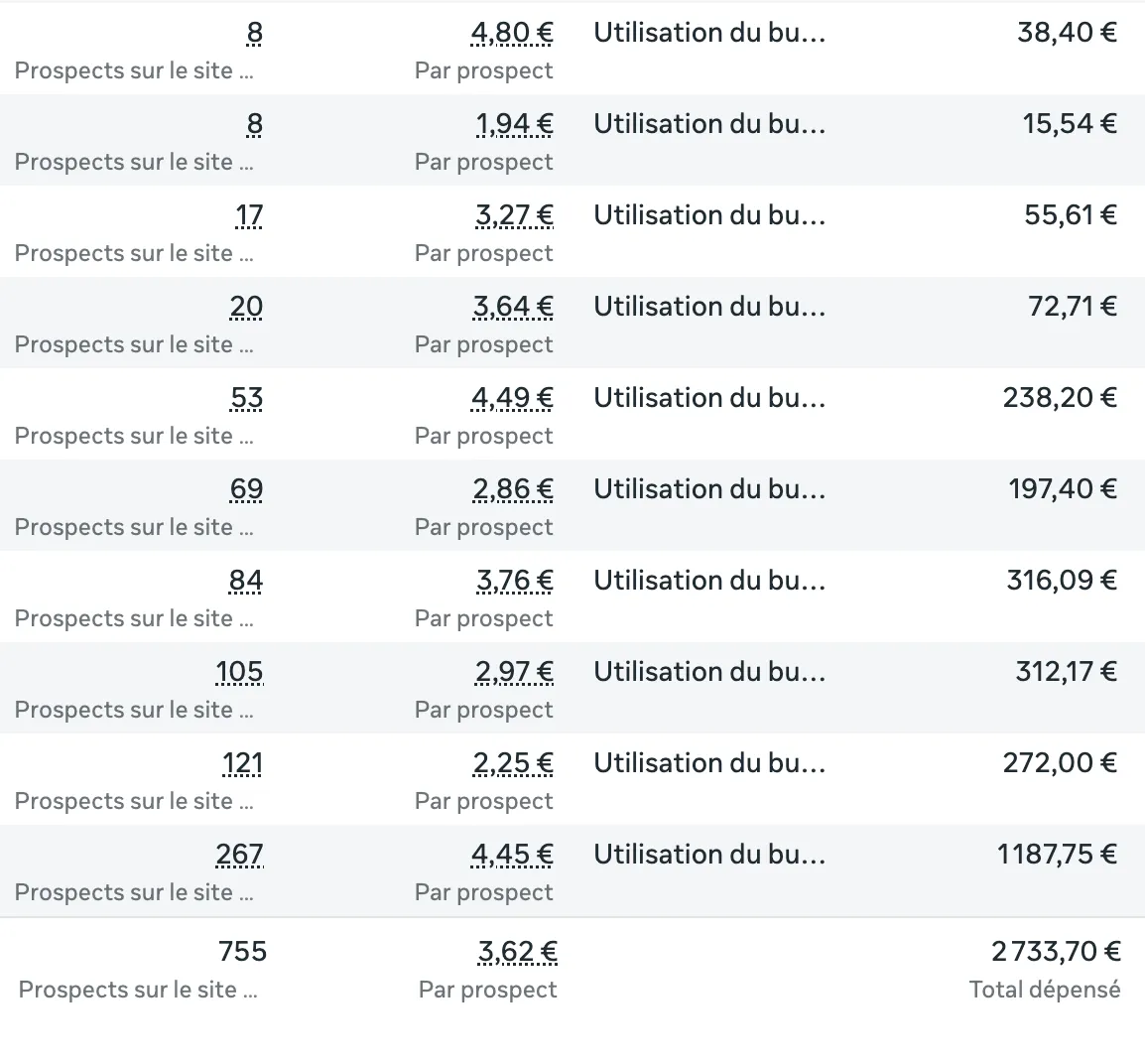 Vous pouvez commencer avec seulement 20€ à 30€ par jour. Vous n'avez pas besoin d'un budget massif, mais simplement d'une dépense quotidienne constante et de la bonne stratégie (ce que ce système vous apporte)