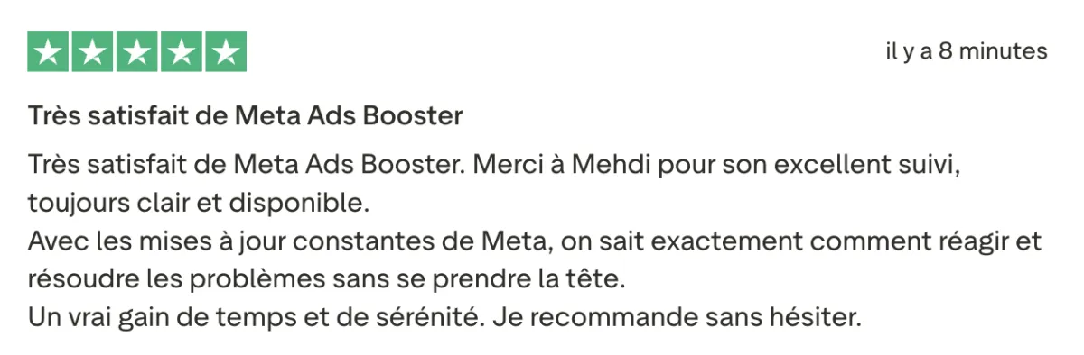 Plus de 1 000 entreprises utilisent déjà Meta Ads Booster pour structurer et stabiliser leurs campagnes après Andromeda.